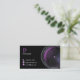 Carte de visite professionnel d'objectif de caméra de photographe. Avec des accents pourpres.