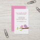 De mignons oiseaux illustrés par des poutres sur une branche d'arbre. Customisez avec vos coordonnées personnelles pour un design carte de visite unique et adorable ! Back a un motif de point de polka de coordination ou vous pouvez utiliser l'espace pour ajouter plus de texte si nécessaire. Cliquez sur le bouton Customiser pour modifier les polices et les couleurs et personnaliser davantage la conception.