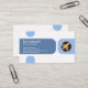 Au-dessus, toutes les informations de la carte se trouvent sur le mur de droite avec votre logo en haut, suivi des détails d'affaires et du slogan. Les détails sont encapsulés par des onglets bleus en haut et en bas.