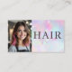 Carte De Visite Opal Glitter Hair Stylist Photo QR Code