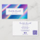 Ce carte de visite opal irisé, moderne et tendance, est conçu pour faire une déclaration. Votre nom ou nom d'entreprise élégamment mis dans la typographie stylisée, se distingue par un arrière - plan holographique violet fascinant. Cette conception reflète non seulement les tendances actuelles, mais vous permet également de laisser une impression mémorable à vos clients. Parfait pour une gamme de professionnels, y compris des maquilleurs, des spécialistes de l'ongle, des propriétaires de salon de beauté, des coiffeurs, des esthéticiennes, des esthéticiens, et plus encore. Vous avez la possibilité de personnaliser le devant avec votre nom (ou nom commercial) et un titre (ou adresse du site Web), créant une représentation unique de votre marque. Le verso de la carte peut être customisé pour inclure vos coordonnées essentielles, l'adresse du site, les liens vers vos comptes de médias sociaux avec des icônes de médias sociaux (Instagram, Facebook), et un code QR, afin que les clients puissent se connecter facilement avec vous. Ce carte de visite sert non seulement d'outil de réseautage, mais reflète également votre engagement envers le style et le professionnalisme dans l'industrie de la beauté.