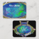 CARTE DE VISITE OPAL VERT BLEU, MONOGRAMME D'OEUVRE D'OR ART NOUVE