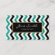 Jolies et féminines, turquoises parties scintillantes, motif noir et blanc de chevron avec de l'or et étiquette noir, carte de visite bilatéral.