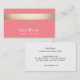 Elégant et élégant design carte de visite vertical avec trois bandes de papier FAUX horizontales en or sur arrière - plan corail rose. Ce n'est PAS de la vraie feuille d'or - mais une image. Il n'y a ni brillance ni texture. Une carte d'appel polyvalente pour les professionnels créatifs et les entrepreneurs. Cette carte de réseautage polyvalente est également idéale pour les salons de beauté, les studios de danse, les boutiques de mode, les wedding planners, les créateurs de bijoux, les cheveux ou tout autre professionnel sensibilisé à l'image.