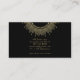 Une carte de visite d'instructrice de yoga céleste éthérée présentant un mandala de soleil doré moderne avec des rayons de soleil et des phases de lune, avec un type de signature de script moderne joli. Effet de feuille d'or faux.