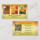 Carte de visite avec vos propres photos personnalisées (en option) encadrées par un arrière - plan orange énergisant en or. Au verso se trouve un modèle de code QR. Beau pour présenter un portfolio ou encourager les clients avec des images attrayantes.