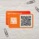 Modèle de carte de visite avec un fond uni de couleur orange néon vif, code QR et police de caractères blanche de style lettrage manuel. Design simple et tendance par Alma Wad. Personnalisez les deux côtés maintenant. Livré en pack de 50 pour une utilisation professionnelle quotidienne.