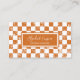Voici notre carte de visite de tableau de à damiers blanc et rouillé. Le recto de la carte est conçu pour faire une déclaration audacieuse, avec un motif unique qui est sûr d'attirer l'attention de vos clients et contacts. Le recto de la carte peut être facilement personnalisé avec votre nom/marque et titre/étiquette, ce qui en fait la représentation parfaite de votre entreprise. Au verso de la carte, nous l'avons gardé simple avec un arrière - plan blanc qui offre un espace suffisant pour toutes vos informations professionnelles. Vous pouvez inclure votre site Web, des étiquettes de médias sociaux et d'autres détails importants qui aideront vos clients et contacts à entrer en contact avec vous.