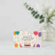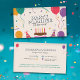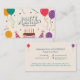 Une carte de visite d'organisateur de fête décorée avec un gâteau d'anniversaire, des ballons colorés, des chapeaux de fête et des confettis. Parfait pour les cartes d'invitation ou pour les organisateurs d'événements tels que les fêtes d'anniversaire pour les enfants ou les adultes, les lancements de produits, les baby showers, les célébrations de famille, les anniversaires de mariage, les enterrements de vie de garçon, les soirées à thème, etc. Les informations de contact complètes sont disponibles au verso avec une liste de services.