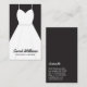 Une carte de visite élégante noire et blanche pour les organisateurs de mariages et d'événements, montrant une robe de mariée blanche. Le design vertical simple et minimal présente votre nom et votre entreprise sur le devant. Le dos est maintenu en noir uni et comprend tous vos coordonnées. Ce design est idéal pour les organisateurs de mariages et les organisateurs d'événements. Cela conviendra également parfaitement aux boutiques de robes de mariée ou aux services de location de robes de mariée.