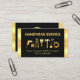 Une couverture noire est encapsulée par des bandes d'or sur les bords gauche et droit de la carte. Il dispose d'un motif d'outils main-homme en or près du centre. Les outils peuvent représenter certains des services que vous pourriez offrir. En haut se trouve le nom d'entreprise avec les coordonnées et votre nom prestigieux près de la base de la carte. Le logo du marteau d'or que vous pouvez utiliser est en haut. Vous y trouverez votre nom prestigieux, vos coordonnées et une option de slogan pour faire connaître vos services. Toutes les lettres sont en faux or. Un design idéal pour tous à utiliser spécialement pour la construction et les affaires manuelles. #handyman #homerepairentrepreneur #handymantools #construction #entrepreneur #chantier #remodelage #chantier #chantier #chantier #maison #toitEpairage #toiture #entrepreneur général #zazzlemade