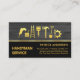 La couverture comprend un panneau en bois gris supérieur et une pièce inférieure noire. Vers le haut est un design d'outils main-d'oeuvre en or. Vous trouverez ci-dessous le nom commercial "HANDYMAN SERVICE", votre nom prestigieux et les coordonnées. Overleaf, dans une couverture noire, un logo en or handyman home tools que vous pouvez utiliser, est en haut. Ensuite, le nom de l'entreprise et ses coordonnées. Toutes les lettres sont en faux or. Une carte design créative pour handyman, entrepreneurs de construction à utiliser. #handyman #constuctionhandyman #homerepaircontractant #construction #charpenter #chantier #remodelage #handymantools #chantier #homerepair #interiordesign #entrepreneur général #zazzlemade
