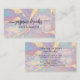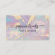 Faites une impression étourdissante avec cette carte de visite irisée de couleur pastel violet avec des accents de paillettes dorées scintillantes. Les teintes douces de lavande, de vert menthe et de bleu ciel créent une esthétique élégante et rêveuse, parfaite pour les professionnels de la beauté tels que les coiffeurs, les artistes maquilleurs et les esthéticiennes. Conçue pour les créatifs modernes, cette carte dégage de la sophistication et du charme, ce qui la rend idéale pour les salons, les entreprises de mode et les entrepreneuses. Mettez en valeur votre professionnalisme et votre style unique avec ce design de carte de visite époustouflant.