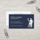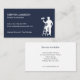 A business card for the painting and decorating industry. With a navy blue background on the front and a silhouette of a painter on steps holding a paint roller, easily customize the white typography with your name and contact details. The reverse of the card has a plain white background where you can list out the services that you offer.