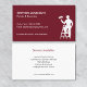 A business card for the painting and decorating industry. With a burgundy red background on the front and a silhouette of a painter on steps holding a paint roller, easily customize the white typography with your name and contact details. The reverse of the card has a plain white background and you can list out the services that you offer.