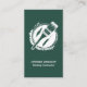 A modern business card with a green background on the front with a paintbrush resting on a paint lid in white. The reverse of the card has a plain white background and you can easily customize the green and dark grey typography with your name, job title and contact details. A simple, minimalist business card perfect for the painting and decorating industry.