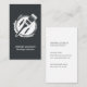 A modern business card with a charcoal grey background on the front with a paintbrush resting on a paint lid in white. The reverse of the card has a plain white background and you can easily customize the charcoal grey typography with your name, job title and contact details. A simple, minimalist business card perfect for the painting and decorating industry.