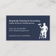 A modern business card designed for painters and decorators. With a navy blue background on the front and a white silhouette of a painter on steps holding a paint roller, easily customize the white typography with your name and contact details. The reverse of the card has a plain white background and space to list your services, along with a QR code - perfect for linking to reviews, your portfolio or website.