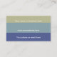 L'avant de ce design minimaliste élégant comprend une palette de trois couleurs avec deux tons de bleu et de kaki tan avec le bonjour de bienvenue dans une simple police de bloc blanc en haut à droite tandis que dans le bas à gauche est un endroit pour ajouter votre nom et/ou votre entreprise. Sur le dos, la palette de couleurs est retournée avec trois emplacements pour vous d'ajouter vos coordonnées. Tous les éléments de cette conception peuvent être entièrement customisés, alors faites-le vous-même ou laissez-le tel quel. Ajoutez simplement vos détails et vous avez fini !