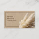 This modern business card in cream beige colors features a photo realistic AI creation of pampas grass on Kraft paper. Modern floral boho design with a touch of minimalism. Perfect for make up artists, hair stylists, spa and beauty, interior designers, wedding-and event planner, aesthetician, doula and more