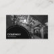 Modèle de carte de visite avec un panneau semi-circulaire noir décoré d'une ligne pointillée blanche en bas à gauche pour votre nom d'entreprise et votre type d'entreprise. Le panneau semi-circulaire est placé sur une photo ou un arrière - plan d'illustration (qui peut également être modifié). Nom et autres coordonnées au verso.
