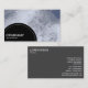 Un modèle de carte de visite avec un panneau semi-circulaire noir orné d'une ligne pointillée blanche en bas à gauche pour le nom de votre entreprise et le type d'activité. Le panneau semi-circulaire est placé sur un fond de photo ou d'illustration (qui peut également être modifié). Nom et autres coordonnées au verso.
