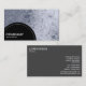 Un modèle de carte de visite avec un panneau semi-circulaire noir orné d'une ligne pointillée blanche en bas à gauche pour le nom de votre entreprise et le type d'activité. Le panneau semi-circulaire est placé sur un fond de photo ou d'illustration (qui peut également être modifié). Nom et autres coordonnées au verso.