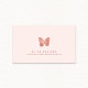 Joli et élégant carte de visite avec un design simple et minimaliste du logo de papillon rose en or sur un arrière - plan rose pastel. Idéal pour les créateurs de bijoux, les maquilleurs, les coiffeurs, les techniciens en ongles, les massothérapeutes, les spas, les salons, les boutiques, etc.