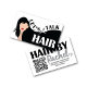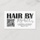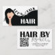 Creative Bold Minimaliste "Let's Talk Hair" Carte de visite de la liste de cheveux avec illustration du modèle de cheveux noirs, des chansons, le style de police de vague et le code QR. Customisez À Votre Intérêt.