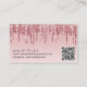 Faites bonne impression avec ce carte de visite chic avec des gouttes de parties scintillant en or rose et rose et votre nom dans un scénario branché contre un arrière - plan en or rose à l'ombre. À l'arrière, entrez l'adresse URL de votre site Web pour créer un code QR que les clients peuvent rechercher pour votre portefeuille, services, prix et autres informations. Parfait pour les salons de beauté, les maquilleurs, les coiffeurs et les esthéticiennes.