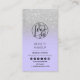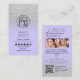 Ce modèle de carte de visite élégant et moderne est parfait pour les professionnels de la beauté qui veulent présenter leurs services avec une touche minimaliste. La palette de couleurs violet parties scintillant argentée et pastel lavande crée un look professionnel et élégant, permettant de rester concentré sur votre marque. Avec des espaces réservés pour votre logo, les coordonnées et les poignées de médias sociaux, il est facile de customiser cette carte pour refléter votre entreprise. Le code QR situé au verso constitue un moyen pratique pour les clients d'accéder à vos informations de portefeuille ou de réservation. Idéal pour les maquilleurs offrant des services de mariée, d'événement et de tutoriel, cette carte est un moyen sophistiqué de se démarquer.