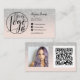 Parties scintillant argentée chic moderne scintille ombre sur pastel blush rose cheveux maquillage photo logo qr code avec un script brossé typographie ajoutez votre photo d'entreprise. Ajoutez vos médias sociaux. Avec une police de script de signature élégante, toutes les couleurs sont modifiables, ajoutez votre logo.