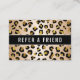 Carte REFERRAL moderne, parties scintillant girly animalier avec image numérique de noir et or empreinte de léopard parties scintillant sur un faux métallique or. Superposition à bande noire. Un coupon de réduction moderne et tendance, parfait pour les studios de danse, les spas, les cosmétologistes, les esthéticiens, les boutiques, les designers, les consultants en cheveux et beauté, les deejays, les organisateurs d'événements et les manicuristes. Si vous êtes une femme patron cette carte est parfait pour attirer de nouveaux clients! Remarque : l'or est un effet imprimé, aucune parties scintillant sur la carte.