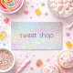 Une image holographique de l'arrière - plan parties scintillant fournit un design sucré sur ce modèle de carte de visite de boulangerie. La parties scintillant colorée évoque les gâteries sucrées, créant un design parfait pour les boulangeries, les décorateurs de gâteaux, les confiseries, les blogueurs gastronomiques, les friandises et bien plus encore. Veuillez contacter le concepteur pour obtenir de l'aide sur les noms plus longs ou la composition spéciale. Cette carte recto verso offre beaucoup d'espace sur l'arrière pour vos coordonnées et vos médias sociaux. Art et design © 1201AM Design Studio | www.1201am.com
