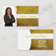 Une fausse parties scintillant jaune doré démarre l'arrière - plan de ce design carte de visite avec un espace réservé photo à gauche avec le nom du modèle à droite. Le dos comprend une conception coordonnée et des couleurs avec des champs de texte pour le métier ou le nom commercial et des détails. Remplacez l'espace réservé par votre photo au format vertical. Remplissez les champs du modèle ou cliquez sur customiser pour sélectionner un style de police, une taille et une couleur que vous souhaitez.La photo de l'espace réservé est fournie par pixabay.com.