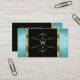 Carte De Visite Parties scintillant noire et Turquoise Décor Monog