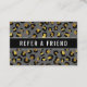 Carte REFERRAL moderne, parties scintillant girly animalier avec image numérique de noir gris et or empreinte de léopard parties scintillant. Superposition à bande noire. Un coupon de réduction moderne et tendance, parfait pour les studios de danse, les spas, les cosmétologistes, les esthéticiens, les boutiques, les designers, les consultants en cheveux et beauté, les deejays, les organisateurs d'événements et les manicuristes. Si vous êtes une femme patron cette carte est parfait pour attirer de nouveaux clients! Remarque : l'or est un effet imprimé, aucune parties scintillant sur la carte.