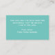Personnalisez cette carte avec les coordonnées de votre église ou les informations de votre pasteur. Vous pouvez personnaliser tout le texte blanc sur cette carte moderne minimaliste de couleur turquoise aqua vert. Vous pouvez ajouter le nom de votre église ou organisation en texte blanc clair et simple. Vous pouvez ajouter votre nom, adresse, e-mail et site web en écriture cursive claire. Le verso est d'un turquoise minimaliste uni avec une écriture cursive blanche où vous pouvez ajouter un verset biblique, un mot ou un message d'espoir, un message de salut ou d'autres informations pour votre réunion d'église ou événement spécial.
