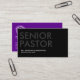 Carte de visite pasteur professionnel, conçu avec soin pour refléter à la fois le leadership spirituel et le style moderne. Doté d'un arrière - plan noir, d'un plan photo confiant et d'une typographie propre, cette carte est parfaite pour les pasteurs, les chefs religieux, les ministres ou les évangélistes qui cherchent à se connecter avec leur communauté. Le recto met en valeur le titre "Pasteur principal" avec une photo et un nom découpés personnalisables, tandis que le violet au verso offre de l’espace pour le nom de votre église, les coordonnées, le logo et un code QR pratique pour un accès facile aux sermons, sites Web ou bulletins de l’église.