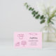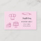 Un arrière - plan rose, décoré d'ustensiles de cuisine, de gâteaux. Personnalisez et ajoutez votre titre, nom/nom commercial et texte à l'avant. Texte blanc : Chaque gâteau raconte une histoire ! Retour : Modèles pour Votre nom, titre, numéro de téléphone, adresse postale et de site, votre propre code QR à votre site Web ou compte de médias sociaux. Image Facebook et Instagram/compte.
