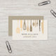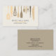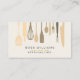 Nettoyez le carte de visite de restauration pour des maîtres de chef et de cuisine présentant des outils de cuisine en métal d'or accrochant sur la surface de noir foncé.