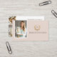 Élevez votre marque de boulangerie maison avec notre modèle de carte de visite de boulangerie de luxe élégant pour la maison par ©Moodthology Papery. Ce design chic et classe présente une mise en page propre et sophistiquée avec un blason floral doré vintage dessiné à la main sur le devant, parfait pour afficher votre monogramme au-dessus de votre nom d'entreprise. Ajoutez votre photo pour personnaliser la carte et faire une première impression mémorable. Le verso permet de mettre en valeur deux photos supplémentaires, un code QR et vos coordonnées ainsi que vos identifiants de réseaux sociaux, ce qui permet aux clients de se connecter facilement avec vous en ligne. Idéal pour les boulangers à domicile, les entreprises de boulangerie, les services de traiteur et les chefs pâtissiers, ce modèle personnalisable allie élégance et fonctionnalité, aidant votre marque à se démarquer.