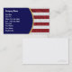 Cartes de visite patriotiques aux couleurs rouge blanc et bleu et disposition de texte vous pouvez customiser pour s'adapter à votre entreprise. Grand carte de visite pour toute personne impliquée dans la politique, une entreprise de construction ou d'entrepreneur, ou tout autre thème lié aux États-Unis, les États-Unis, les troupes militaires ou les anciens combattants.