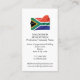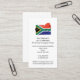 Carte de visite patriotique moderne de DRAPEAU SUD-AFRICAIN, montrant la conception combinée du plan et du drapeau de l'AFRIQUE DU SUD. L'image du drapeau est PERSONNALISABLE pour que vous puissiez la remplacer par votre propre photo ou logo (oblong), et personnaliser avec votre nom et vos coordonnées. Au verso, vous avez la possibilité d'ajouter votre propre texte ou de supprimer.
