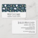 Un carte de visite avec un motif fantaisiste et festif. Ours polaires, rennes, arbres, renards et flocons de neige. Sur un arrière - plan vert foncé.