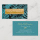 Carte De Visite Paume tropicale bleu turquoise écriture or moderne