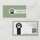 Carte De Visite Paw and QR code sage green Vet/Veterinary Clinic