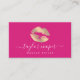 Ce design carte de visite d'artiste de maquillage élégant présente des lèvres faux or, arrière - plan rose chaud et une police de calligraphie élégante.