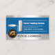 Le logo de la maison se trouve en haut, sur une couverture bleue, suivi de votre nom prestigieux, de vos coordonnées et d'une légende de slogan pour faire connaître vos services.