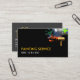 Une couverture noire avec éclaboussure de peinture est sur le point d'être peinte par une brosse à rouleaux dorés. Près de la base se trouve le nom d'entreprise "SERVICE DE PEINTURE" avec le contact téléphonique. Sur le dessus, dans une couverture gris foncé, les détails de la carte sont sur la gauche avec un logo "home-brush" que vous pouvez utiliser. Juste sous le logo se trouve votre nom prestigieux et les coordonnées. C'est une carte à utiliser par les peintres.